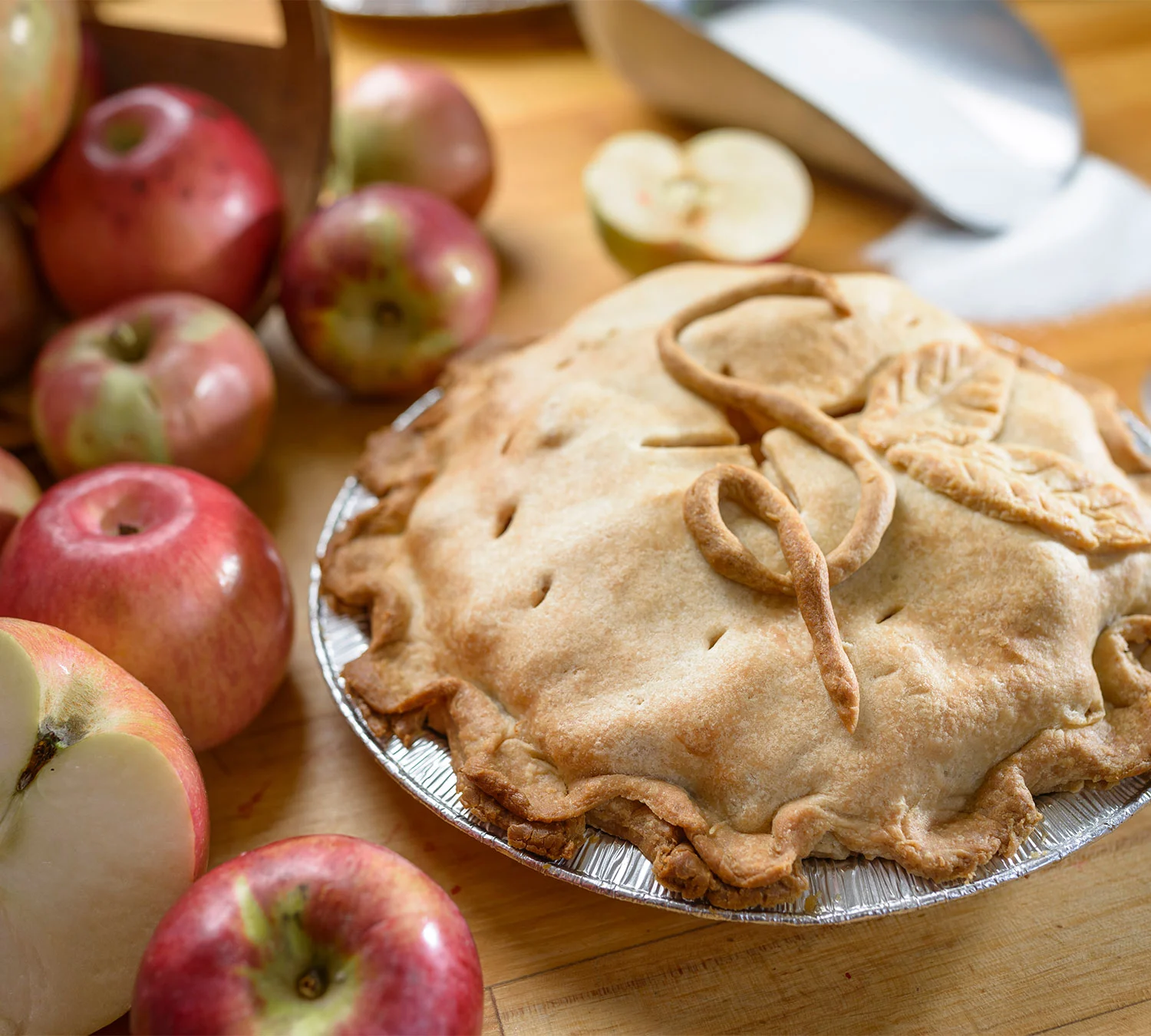Our scrumptious apple pie contains apples hand-picked, hand-peeled, and hand-cut from Treelicious Orchards. All pies are vegan-friendly and can be optionally gluten-free or sweetened with Splenda.